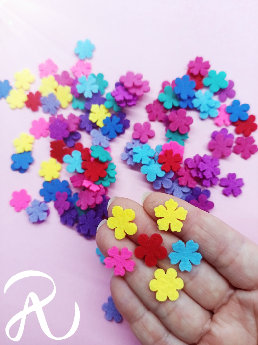 Mix forme si culori - flori din fetru de diferite marimi pentru activitati creative, decoratiuni de camera, coronite, fundite, martisoare, cat si pentru confectionarea felicitarilor, invitatiilor, calendarelor, etc