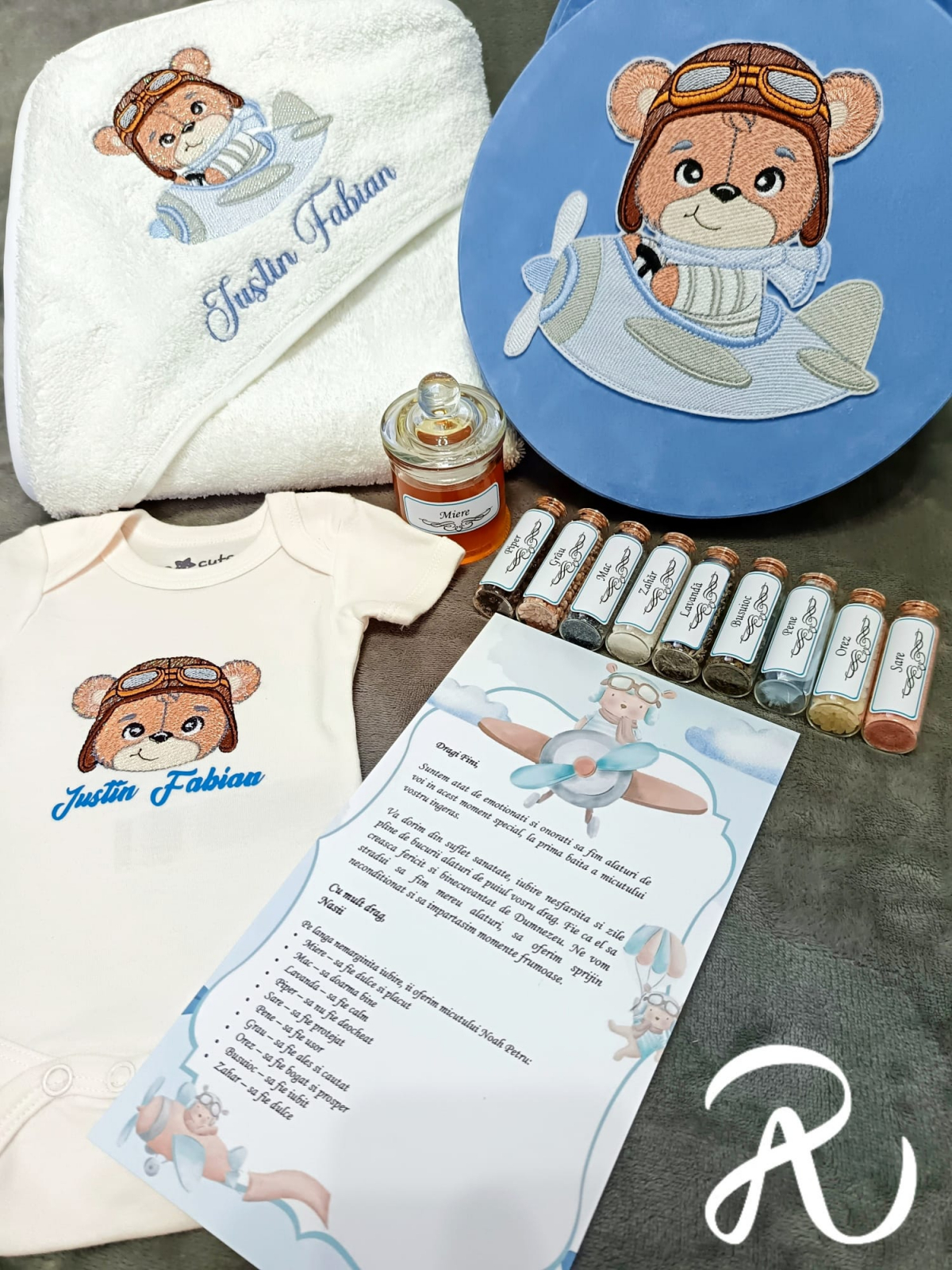 Set prima baita cu nasii pentru baiat - ursulet aviator